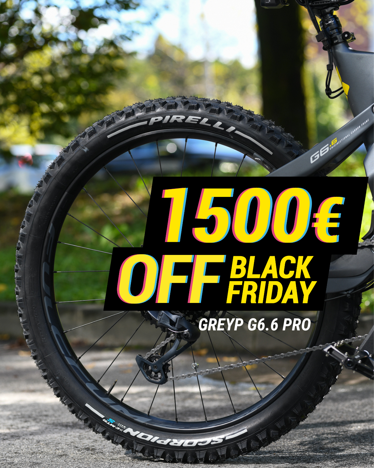 Greyp G6.6 PRO is equipped with an EXT Era V2 fork, Pirelli Scorpion e-MTB S tires, and a FOX Float DPS Performance rear shock. Elevate your game!